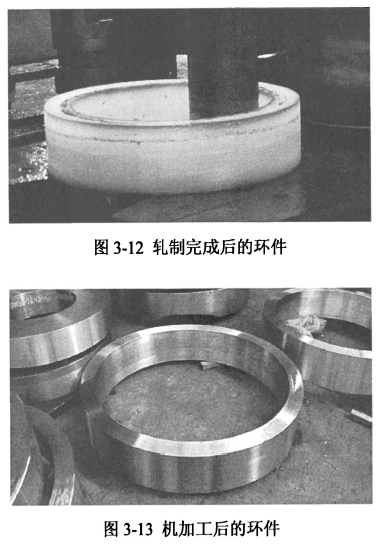 后續(xù)將按照制定工藝完成的鍛棒,進(jìn)行后續(xù)的鐓粗、沖孔制坯工藝,送至RAM9000型軋環(huán)機(jī)進(jìn)行環(huán)件軋制,如圖3.12所示;軋制完成后環(huán)件空冷至室溫,經(jīng)過(guò)簡(jiǎn)單的粗車(chē)加工后,如圖3.13所示,使用5MHz的超聲波探傷儀對(duì)環(huán)件本體進(jìn)行探傷,探傷結(jié)果為細(xì)晶。