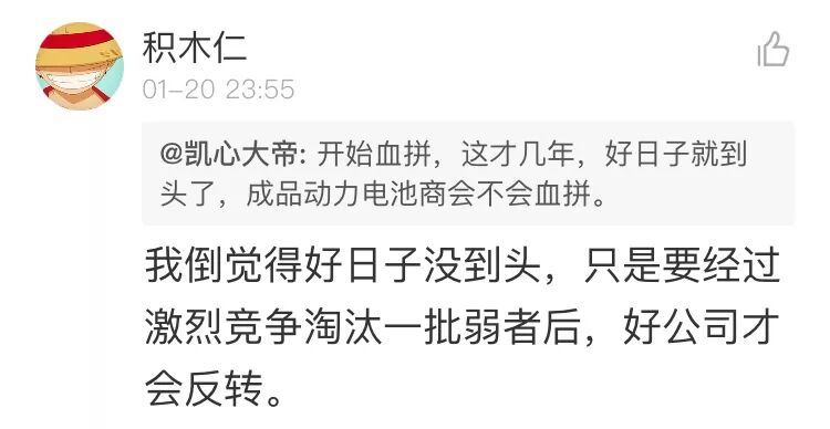 2018年伊始,鋰電行業(yè)就熱鬧非凡,各領(lǐng)域巨頭率先行動,豐田加注鋰礦“維穩(wěn)”上游原料價格,上海恩捷主動降價,天齊鋰業(yè)加速碳酸鋰技改擴產(chǎn)......對此,鋰電行業(yè)老鐵怎么看,來看本周鋰電行業(yè)老鐵們的精彩評論。