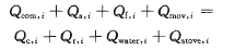式中,等號(hào)左邊為能量收入項(xiàng),依次為燃料化學(xué)熱、助燃空氣物理熱、燃料物理熱、煙氣流動(dòng)載熱;右邊為能量支出項(xiàng),依次為爐氣對(duì)鋼坯及爐墻的對(duì)流換熱和輻射換熱、爐氣蓄熱、爐內(nèi)水冷裝置的冷卻介質(zhì)吸熱;下標(biāo)i為任意爐氣段序號(hào)。