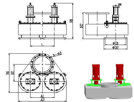 規(guī)格 | H | H1 | L1 | L | L2 | B | B1 | B2 | D | D1 | D2 | n | d |